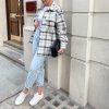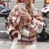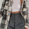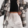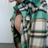 Design: Collared, Button Up, Long Sleeves, Lattice, Large Pockets, Casual and Oversized.