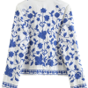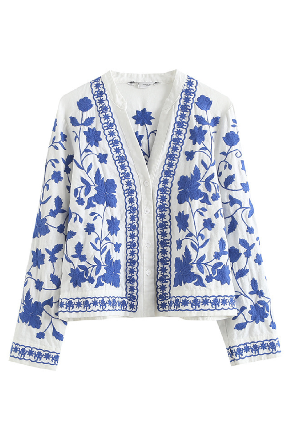 Goodnight Oversizedhoodiejacket ‘Sapphire’ Floral Embroidery V-Neck Shirt