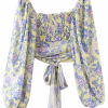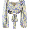 Sapphire’ Floral Long-Sleeve Tie Crop Top