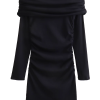 Goodnight Oversizedhoodiejacket ‘Sapphire’ Off-Shoulder Long Sleeve Short Dress