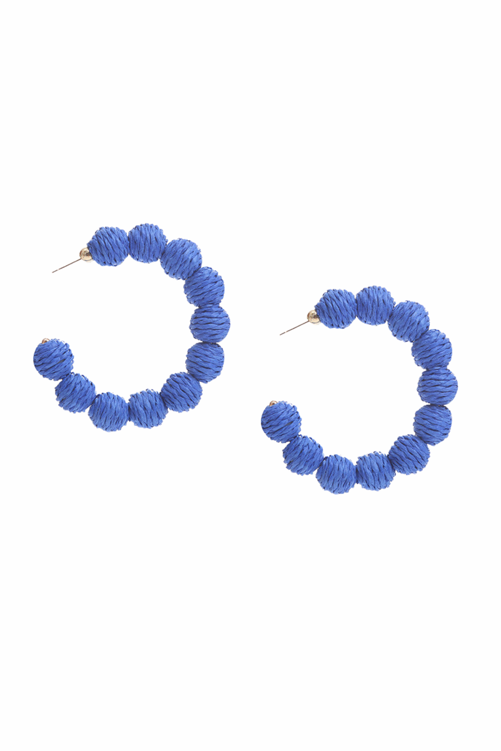 Goodnight Oversizedhoodiejacket ‘Sapphire’ Raffia Hand Woven C-Hoop Earrings (11 Colors)