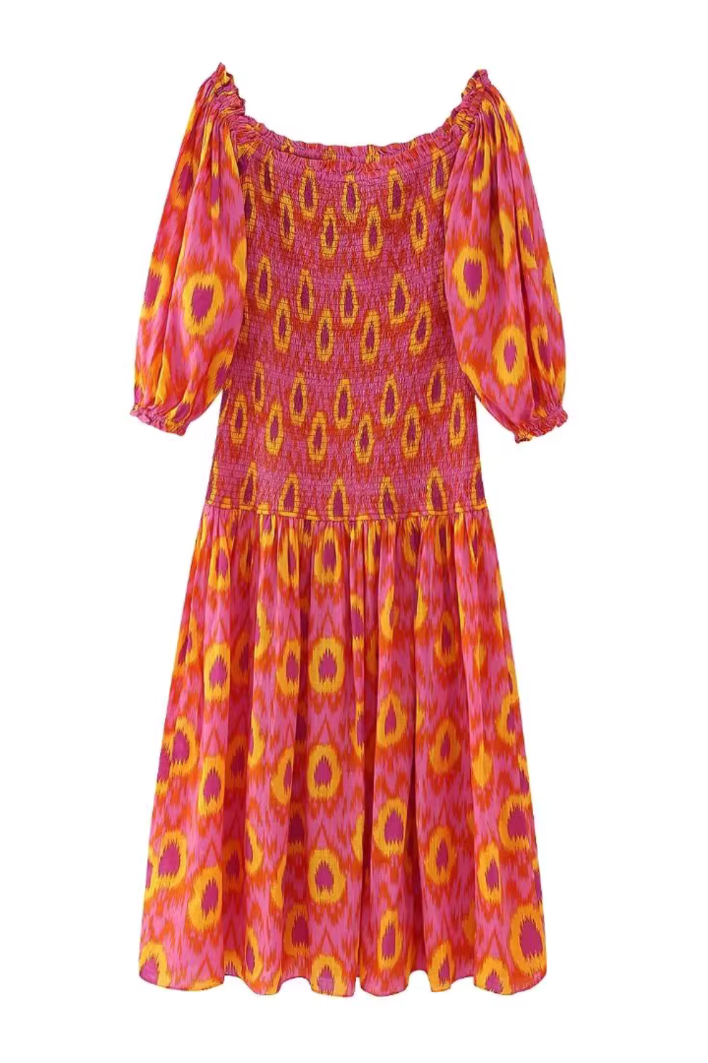 Goodnight Oversizedhoodiejacket ‘Sapphire’ Smocked Printed Midi Dress