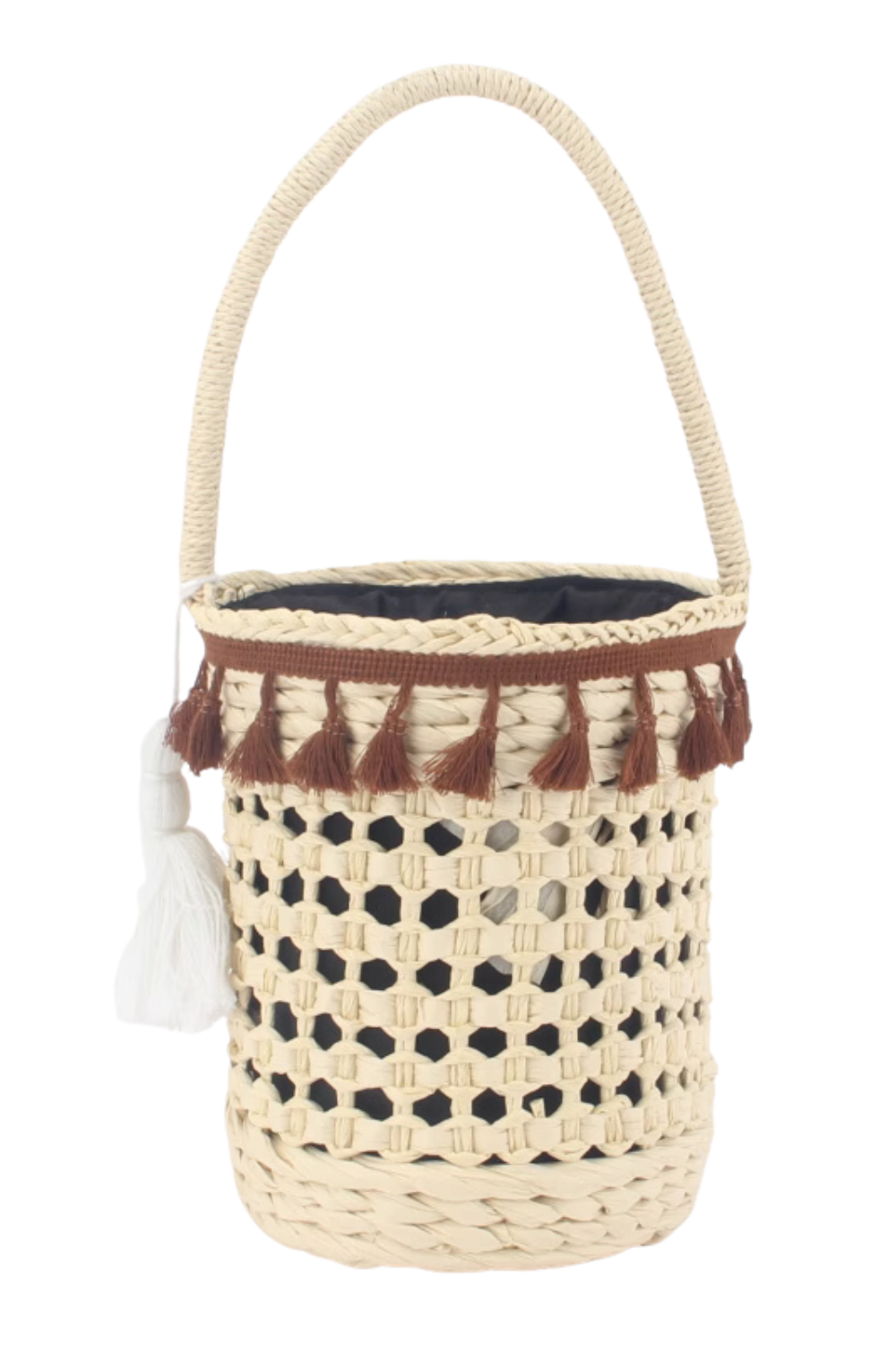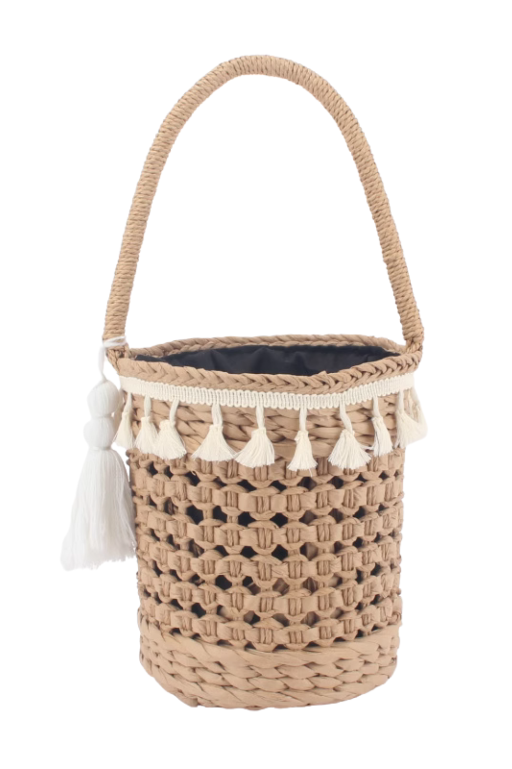 Goodnight Oversizedhoodiejacket ‘Sapphire’ Straw Woven Tassel Bucket Bag (3 Colors)