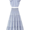 Goodnight Oversizedhoodiejacket ‘Sapphire’ Striped Sleeveless Top & Tiered Skirt Set